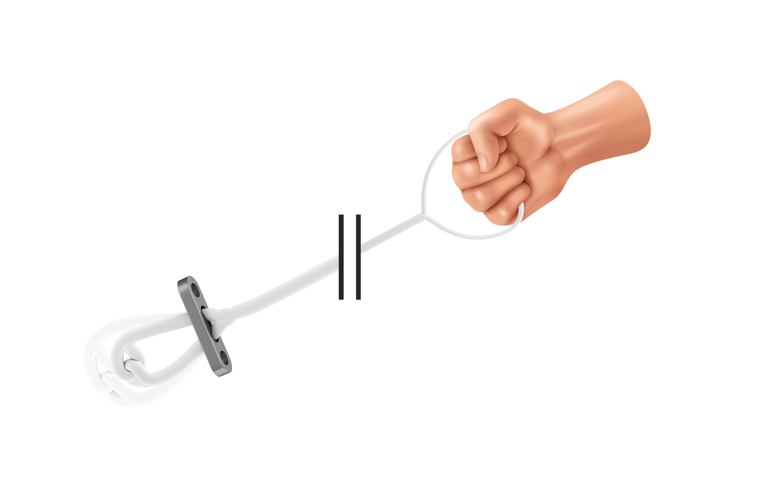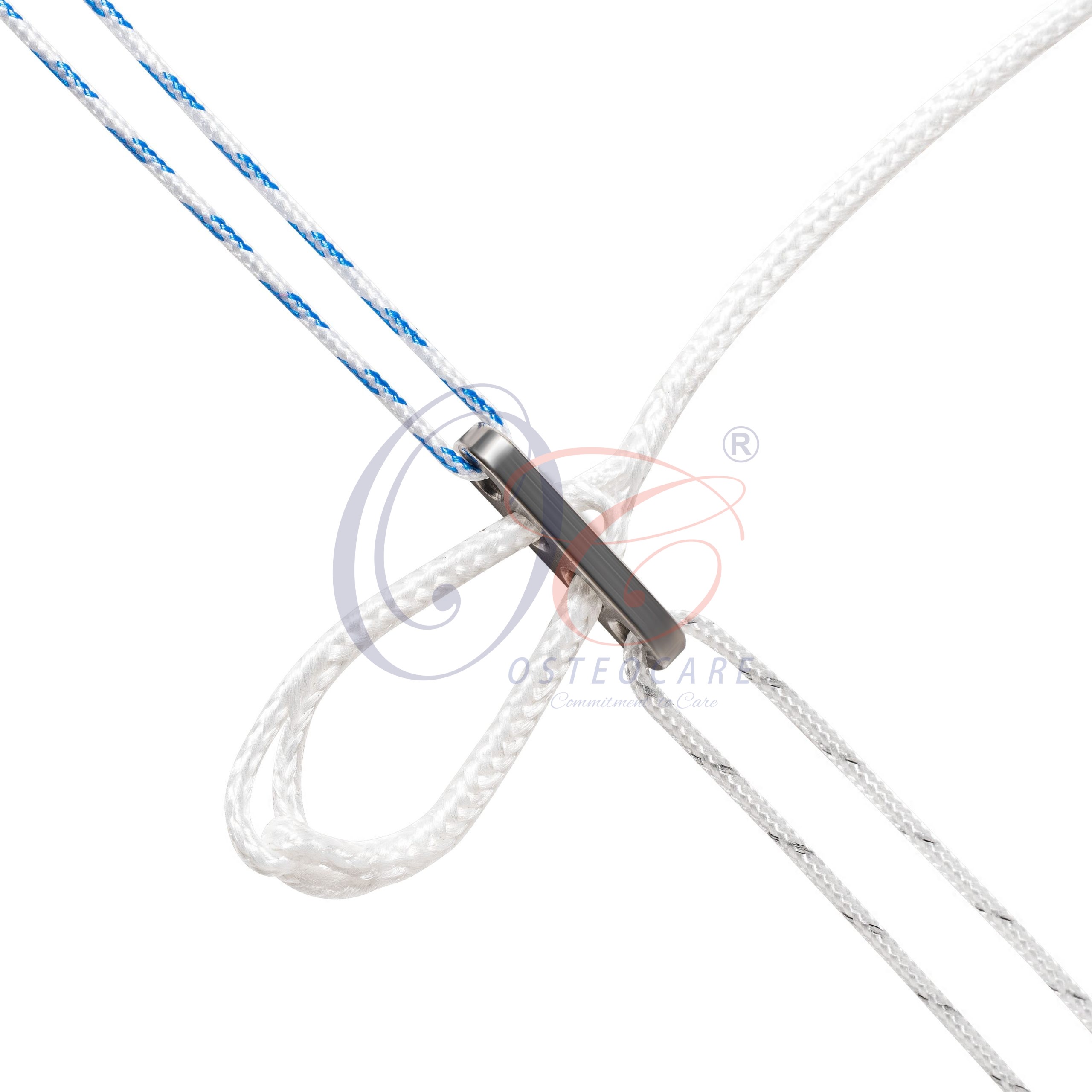 The OC EcoButton™ Flex is a hybrid loop with an added advantage of micro adjustability. It is available in loop sizes of 15, 20 and 25mm. It has a fixed loop which can be reduced up to 5mm when cinched. It has Leading Fiber (#5 UHMWPE, White/Blue), Flipping Fiber (#5 UHMWPE, White/Black), and Tensioning Fiber (#5 UHMWPE, White). The tunnel drilling technique remains the same as the conventional fixed loop technique. The loop at the end of the Tensioning Fiber provides onehanded adjustment. Once the initial fixation is done, the loop is pulled in a seesaw motion by one hand to shorten the loop and further tighten the graft inside the tunnel. It provides greater flexibility and control by eliminating the limitations of conventional fixed and adjustable loop. It offers excellent tensile strength comparable to a fixed loop, with the added benefit of micro adjustability. This allows for any graft laxity to be corrected by shortening the loop as needed.