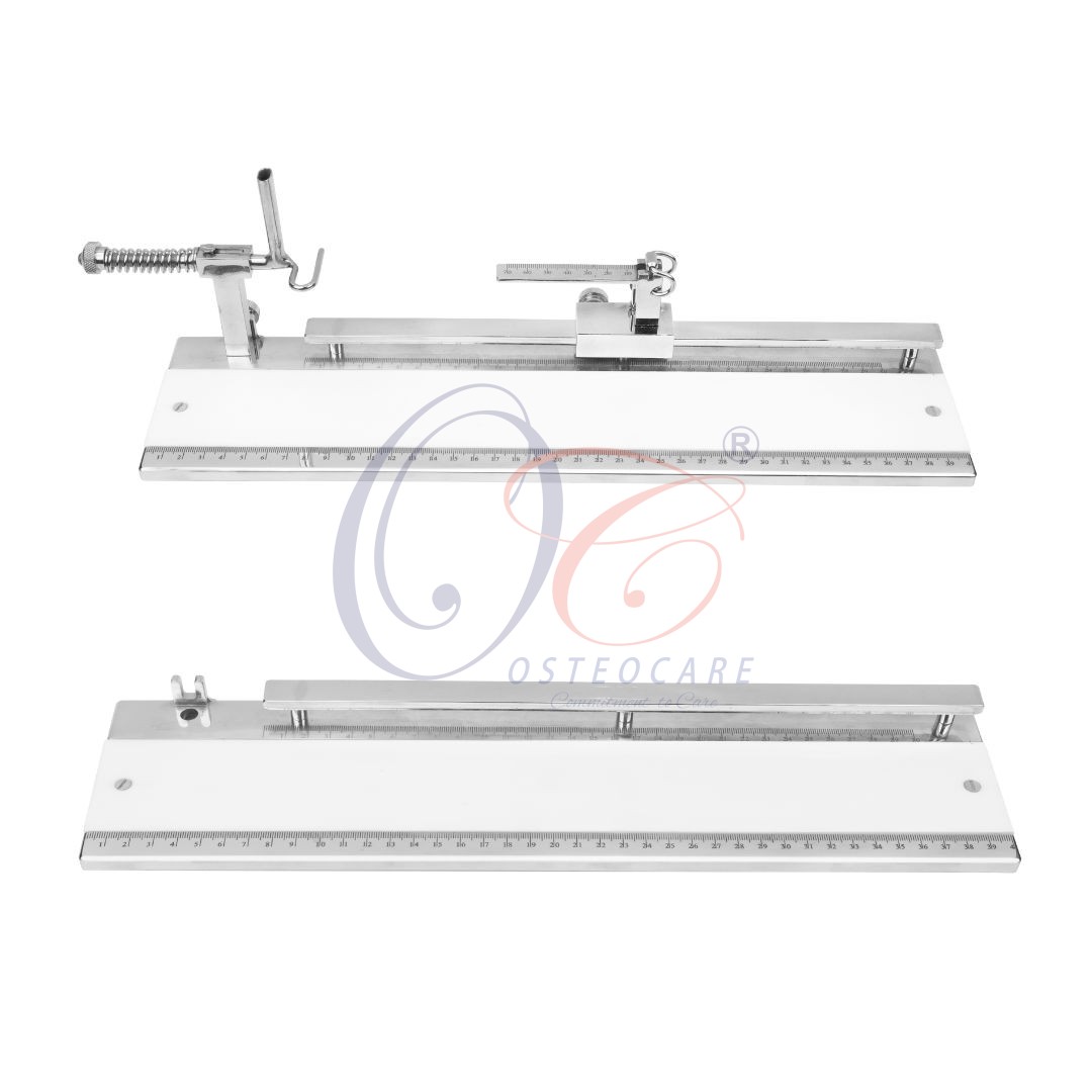 The OC Graft Prep Station is designed for use with arthroscopic surgery and consists of five components: Graft Preparation Board, Graft Holder-Left, Graft Holder-Right, Sliding Base, Suture Holder with Tensioner, Button Holder with Scale. The system helps to prepare soft tissue and bone-tendon-bone grafts, such as patellar tendon, quadriceps tendon, semitendinosus and gracilis tendons. It provides effective graft preparation through interchangeable components.