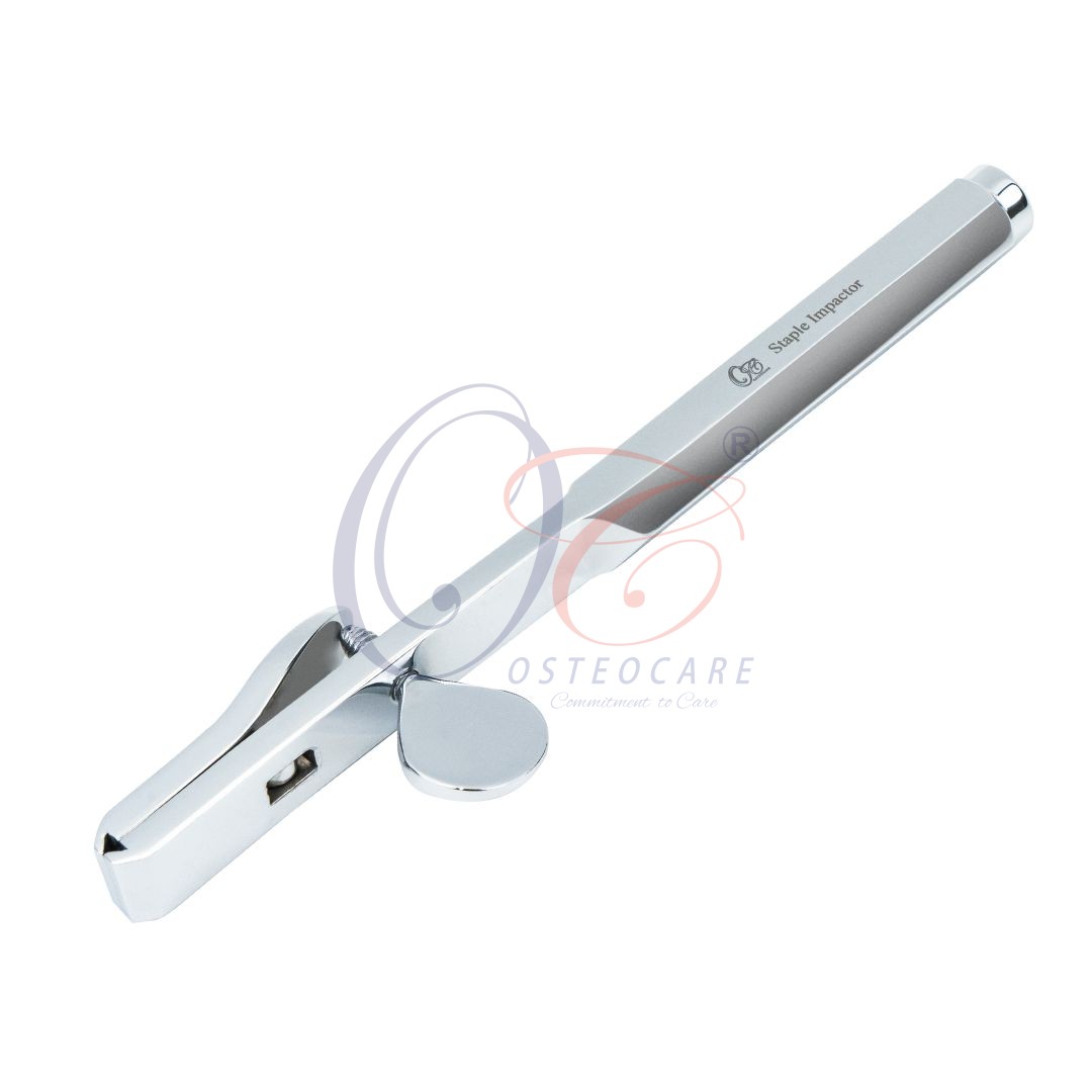 OC Impactor for Spiked Ligament Staple is a holding instrument for Spiked Ligament Staple. The Staple can be held on the impactor and impacted directly into the bone. The Impactor has a side locking key to tighten and loose staple.