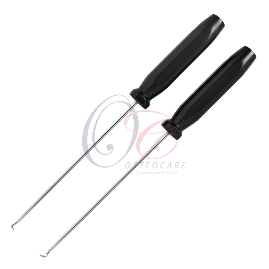 The OC Meniscal Probe is a curved probe specially designed for meniscus repair. It is available with two type of curved tip to assess medial and lateral meniscus. It is also calibrated to measure depth of the meniscus or tear.