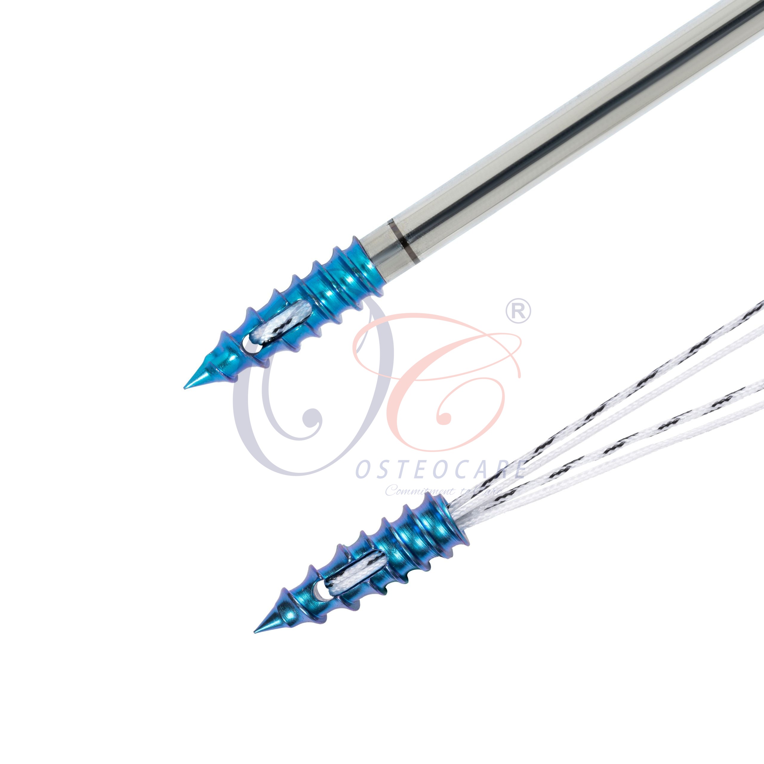 The OC OsteoFix™-FD is a Fully & Dual-Threaded Titanium Suture anchor, Measuring 5.0mm in diameter, Designed for multiple applications, including shoulder, knee, foot & ankle, and elbow repairs this anchor is pre-loaded with durable #2 OsteoBraid™ Sutures.