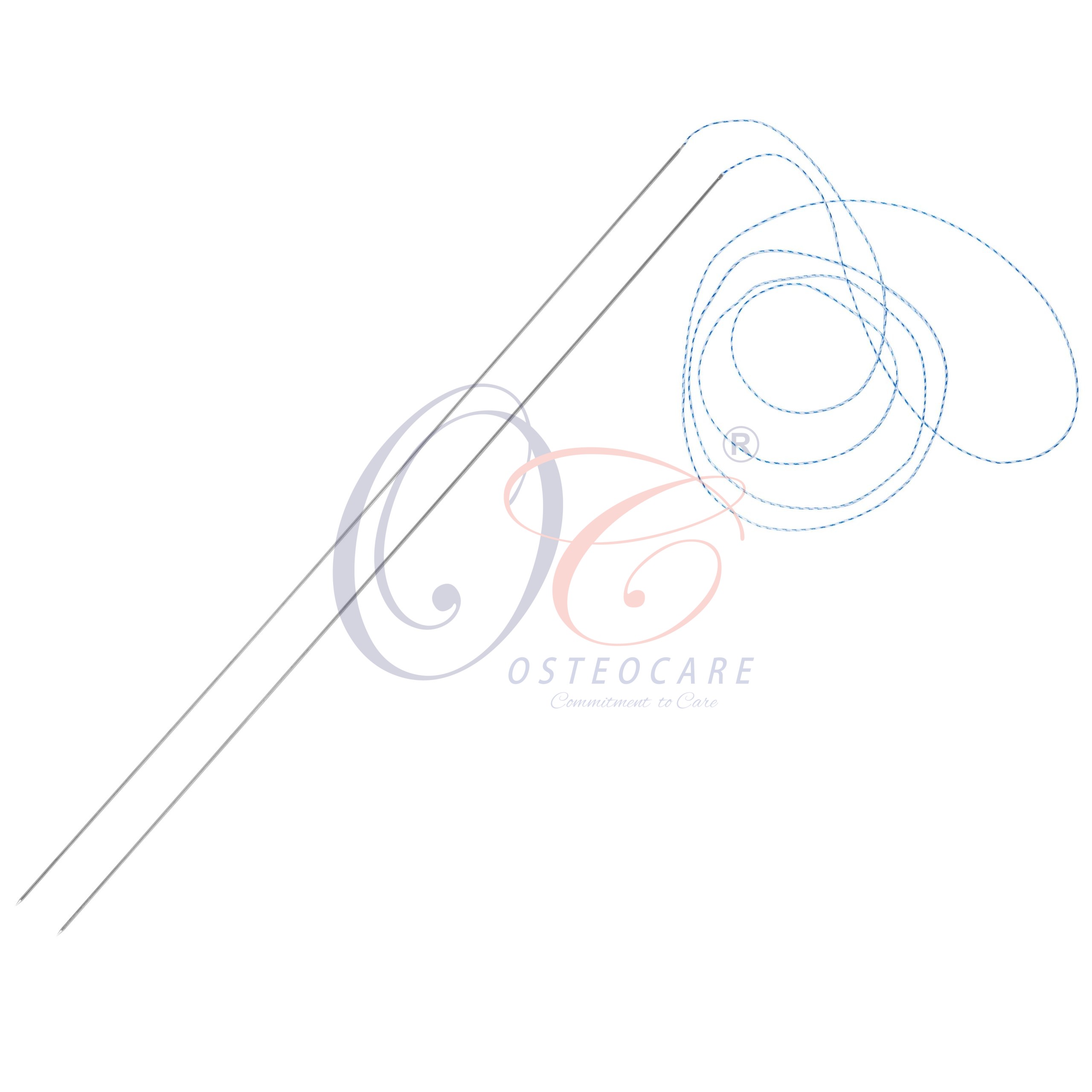 The OC OsteoRepair™ Needle with USP Size 2-0 Fiber is a Meniscus Repair kit, ideal for a standard inside-out meniscus repair. The needles are 24.5cm long and made with stainless steel with a 100cm length of USP Size 2-0 Fiber swedged onto the back of each needle. These needles provide exceptional strength and a soft feel for increased precision and comfort while piercing the meniscus while the 2-0 Fiber allows for abrasion resistance, the ability to tie smoothly, a lower knot profile and improved tensile strength for secure repairs. The needles are used with single or double-lumen cannulas to position optimum vertical or horizontal mattress sutures on superior or inferior meniscal surfaces.